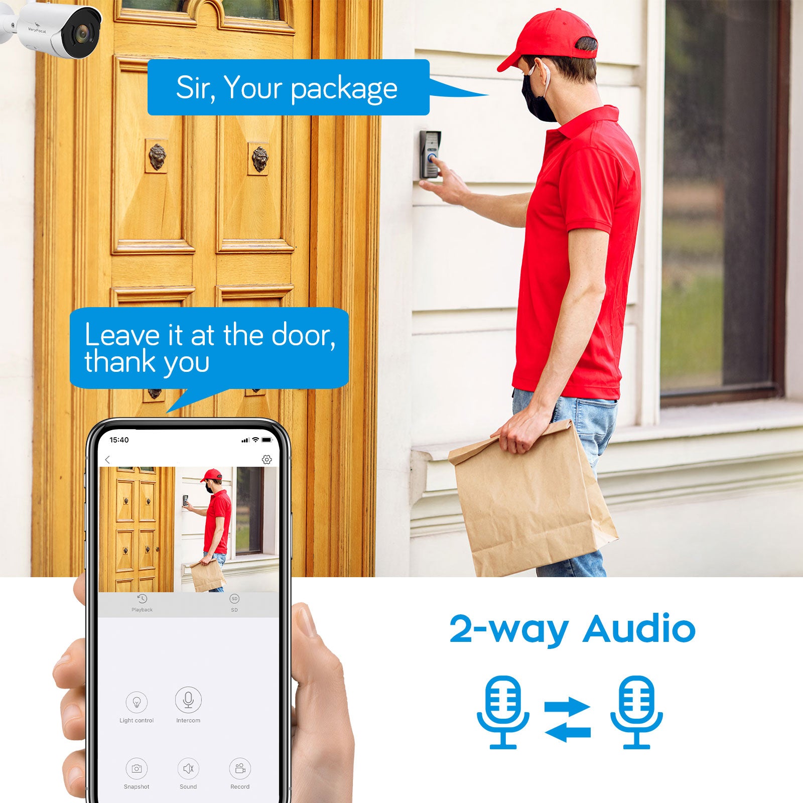 With 2K (2304*1296p) high resolution, the camera delivers clear image better than 1080p day and night.