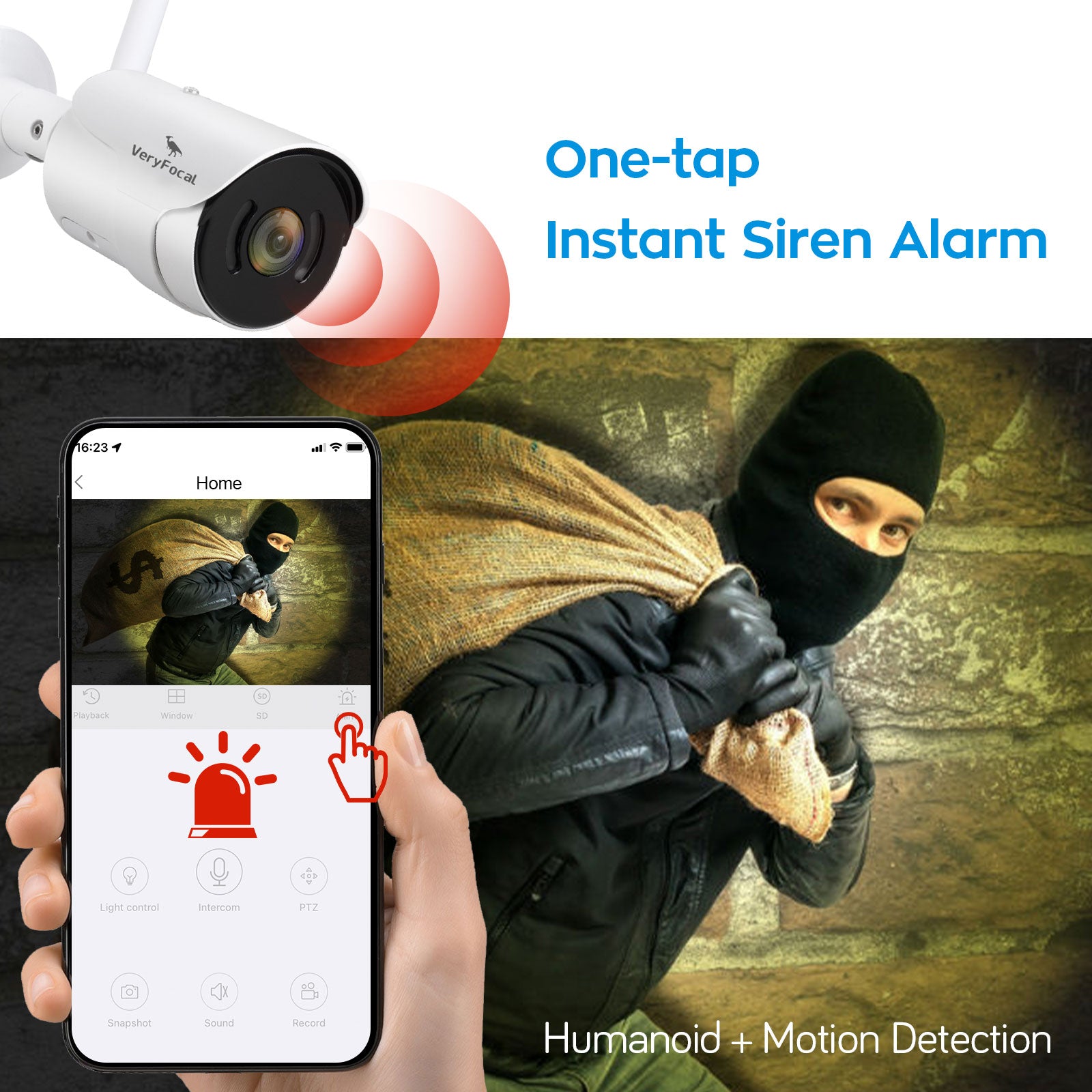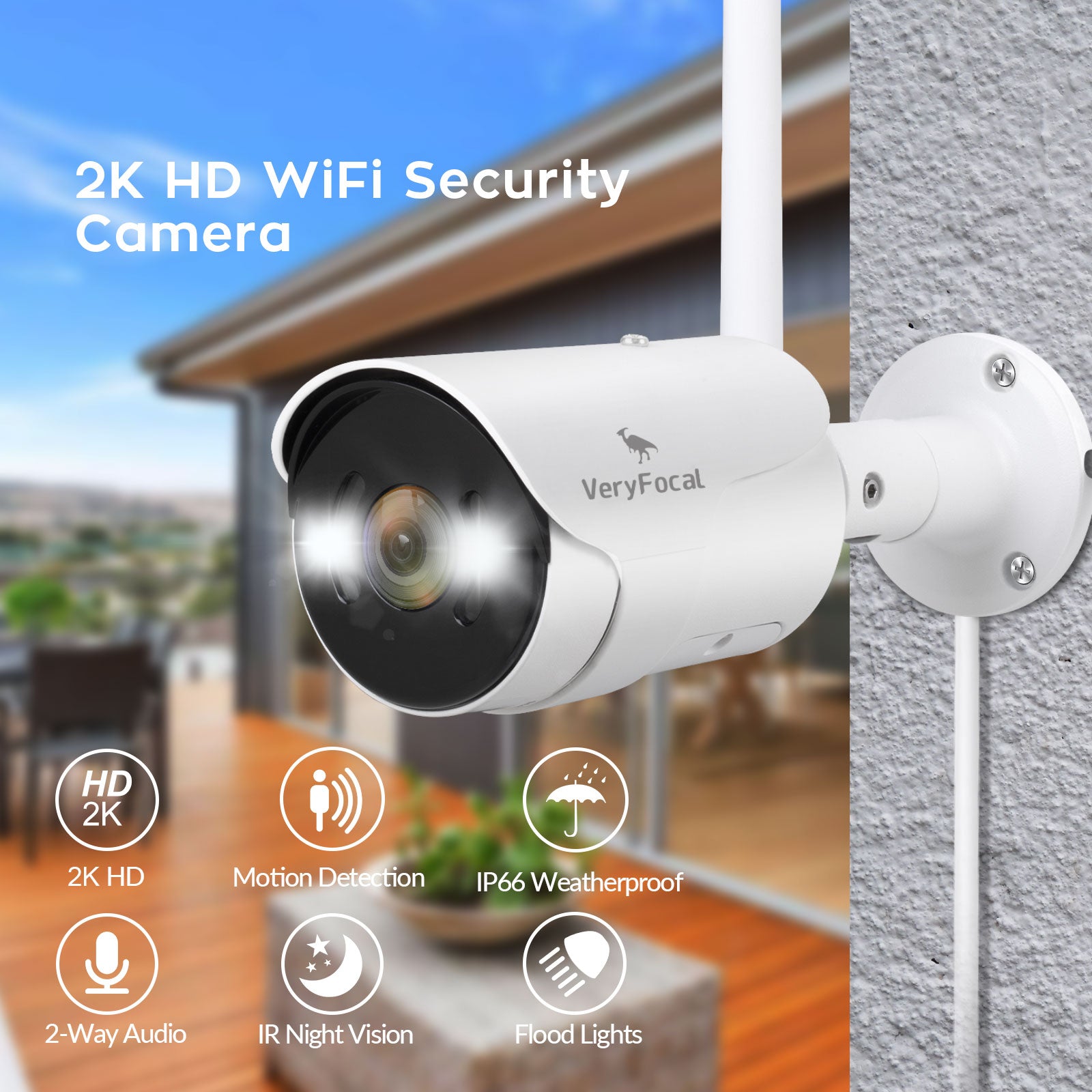VeryFocal 2K HD Wireless Security Camera Outdoor (Auto Flood Lights, 2-Way Audio, IP66 Weather-Resistance, Plug-in for Power)