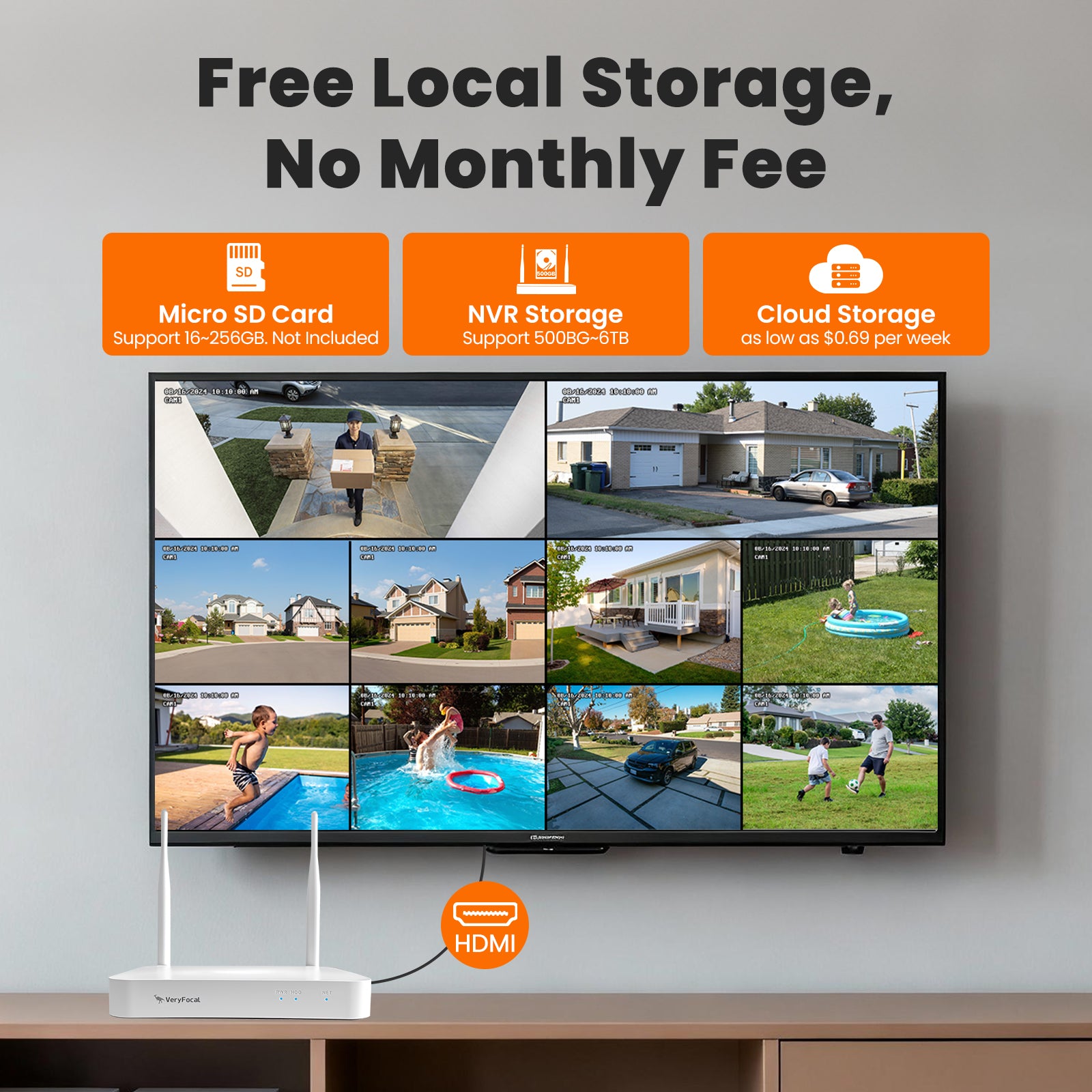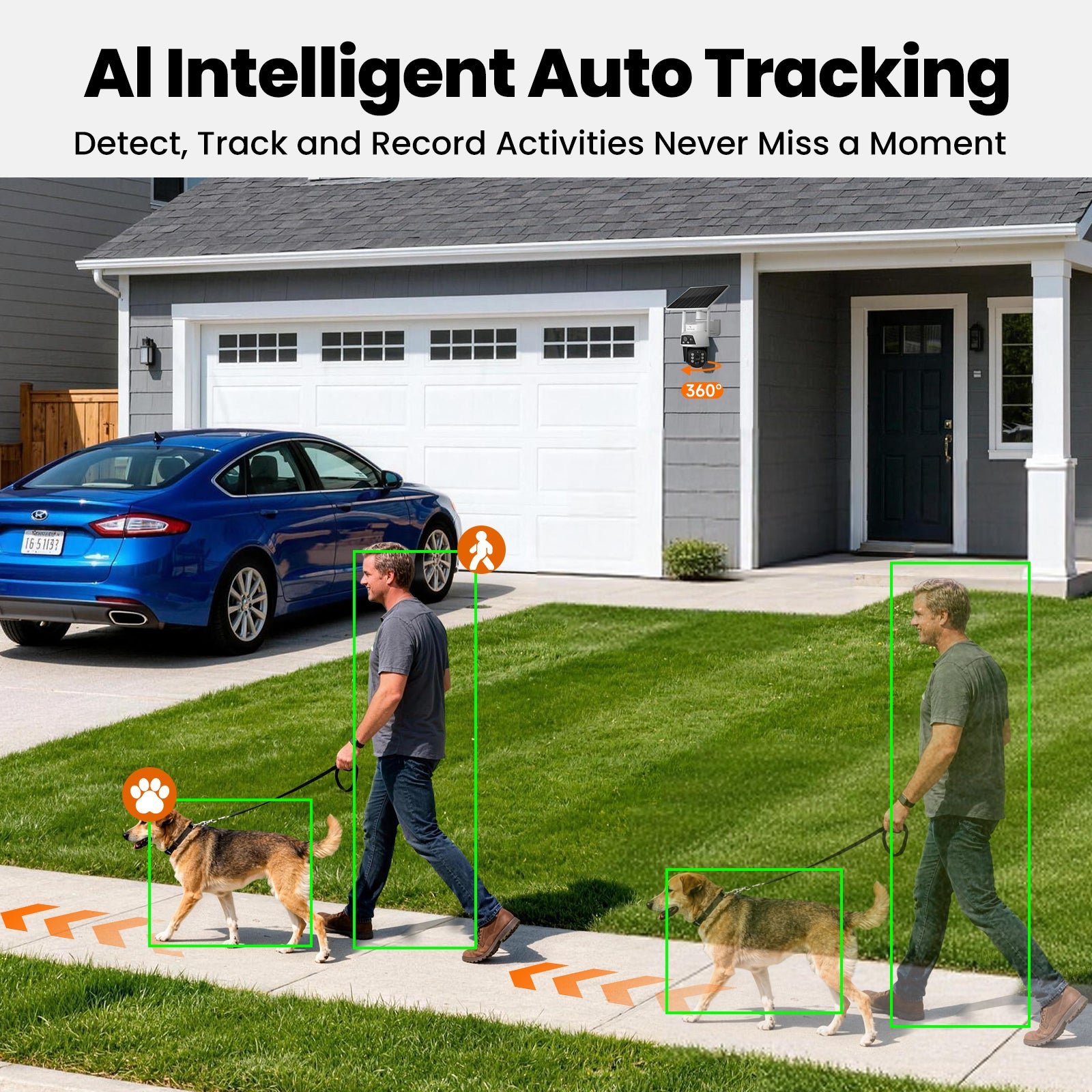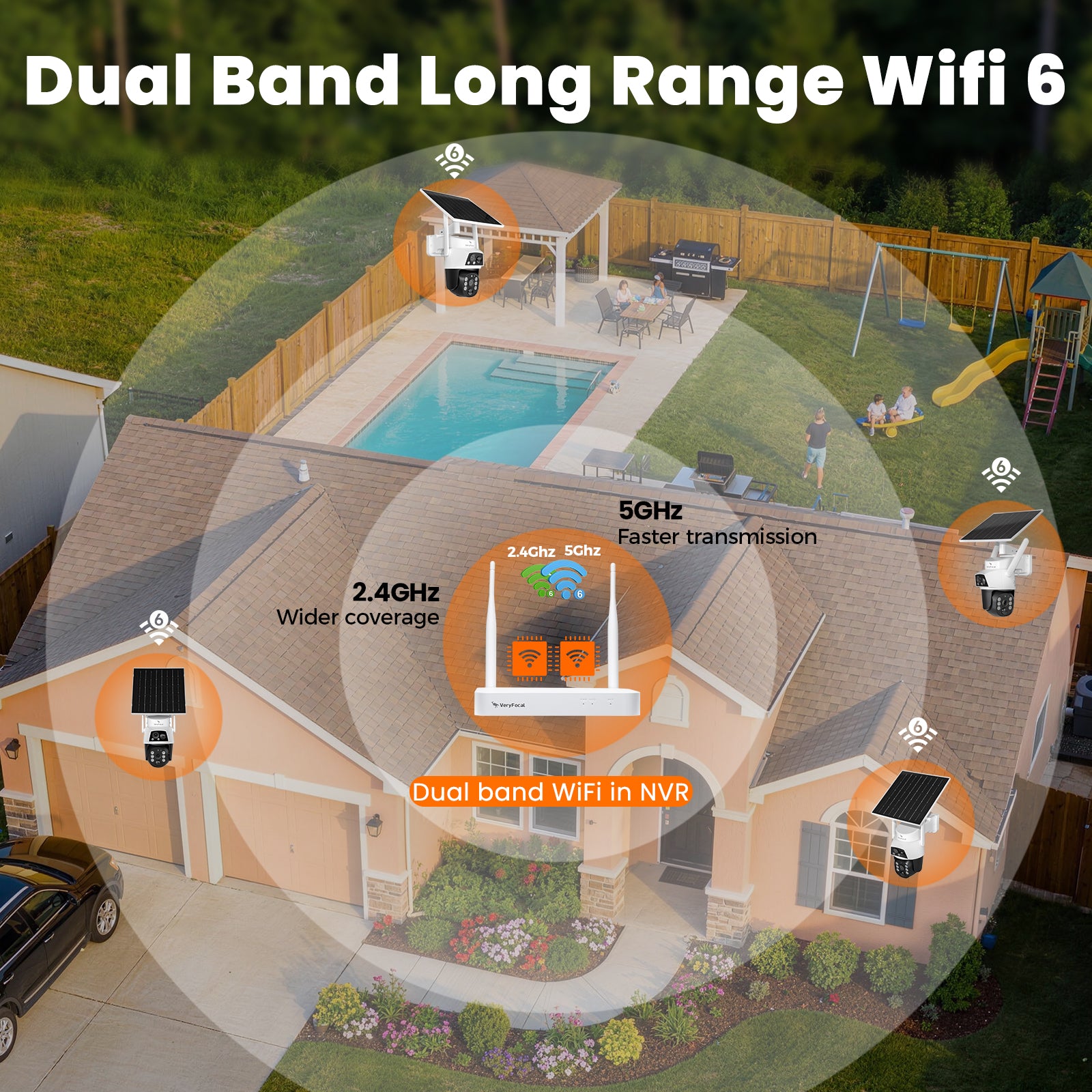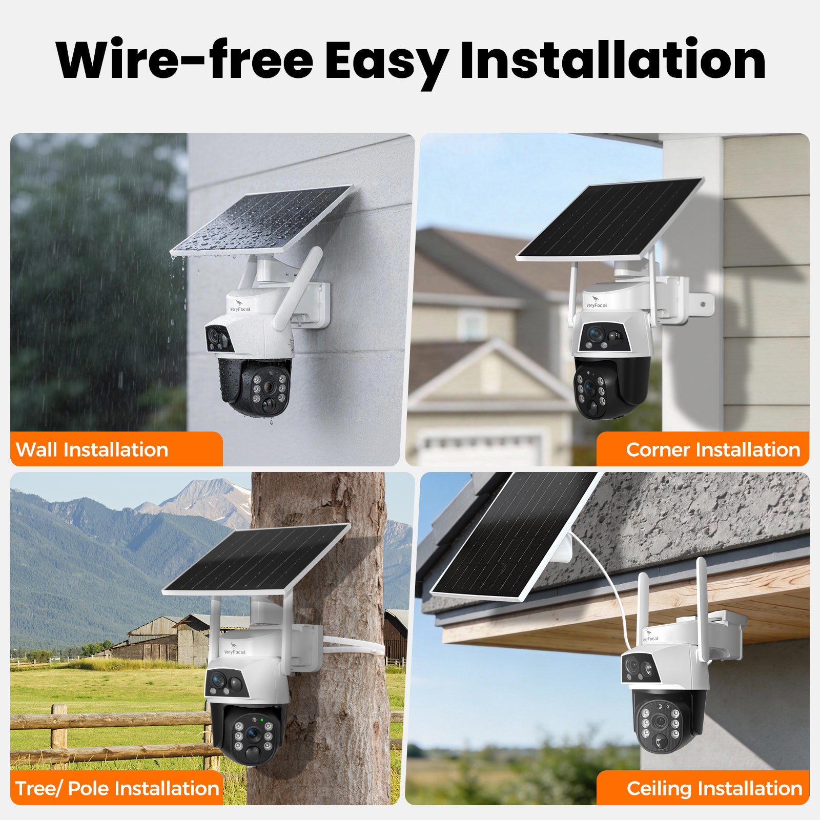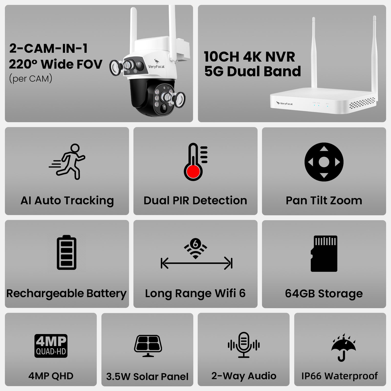 VeryFocal 4-Cam Solar-Powered Wireless Security System, Dual Lens 360° AI PTZ, 10CH 4K NVR WiFi 6 Mesh, IP66 Weatherproof, 500GB Local Storage, No Subscription Fee for Home Outdoor