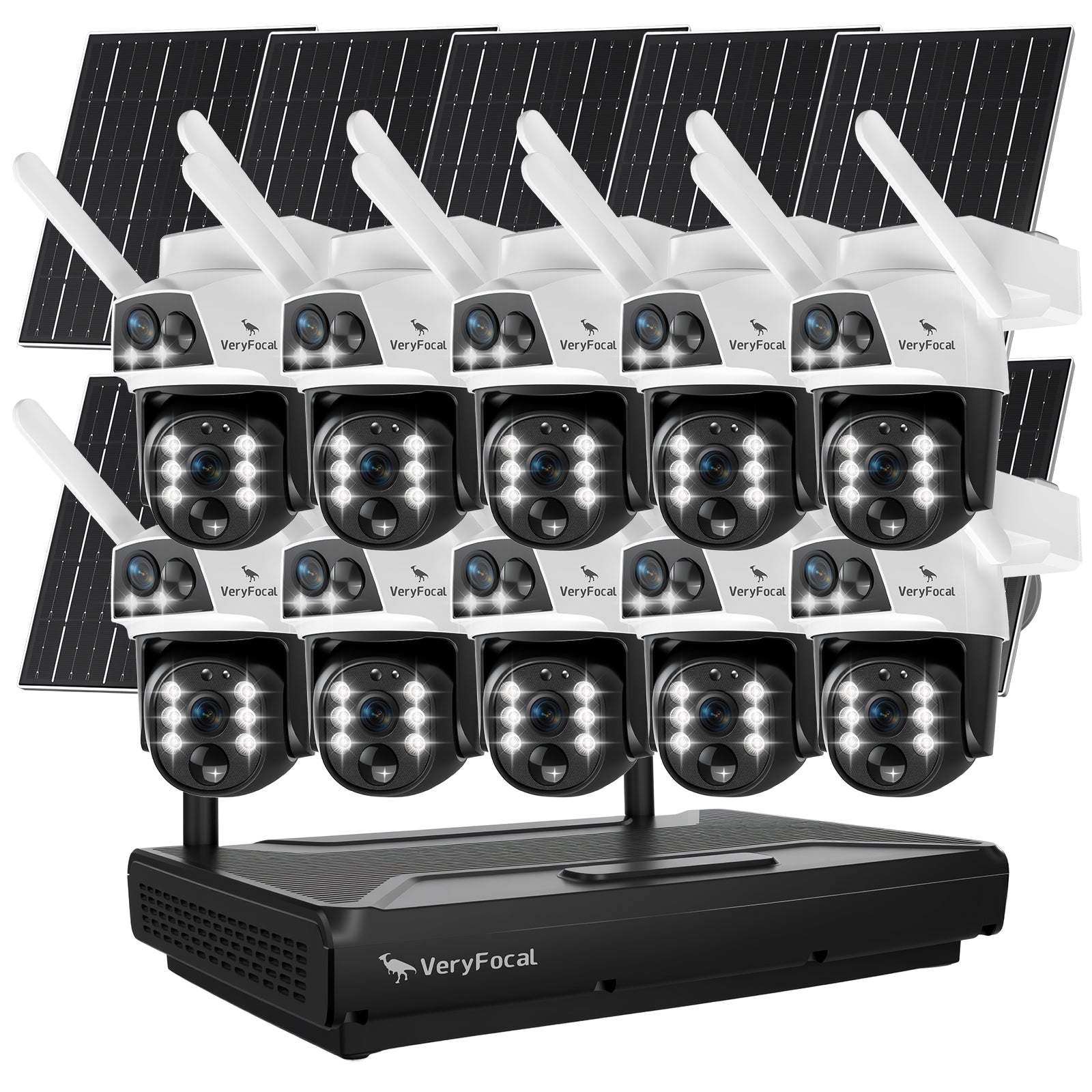 VeryFocal Solar Dual Lens Wireless Camera System, 10-Set 2-in-1 PTZ Cameras for Home Security, 10CH 4K Long Range WiFi 6 Surveillance DVR NVR, CCTV Outdoor Surveillance Kit